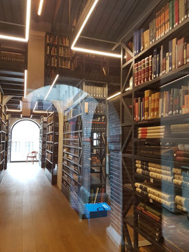 Onder toeziend oog van de meester, Abel's tijdgenoot Rembrandt, verwerk ik de opmerkingen en suggesties van vandaag (Meesterproef van Querido Academie) in het VOC-café in de Schreierstoren.